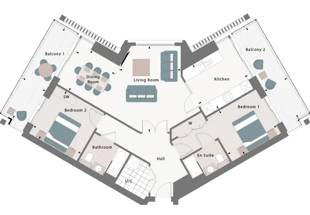 This rare two-bedroom residence at Wandsworth Mills combines boutique scale with high-yield performance. Dual balconies, en-suite master, and bespoke interiors attract premium corporate tenants. Located in regenerating Zone 2, the development offers up to 18% projected capital growth by 2030, with rental yields averaging 4.5%. The 999-year leasehold and peppercorn ground rent ensure long-term security for domestic and foreign investors. Rapid transport links to Waterloo and Heathrow enhance liquidity and tenant demand.