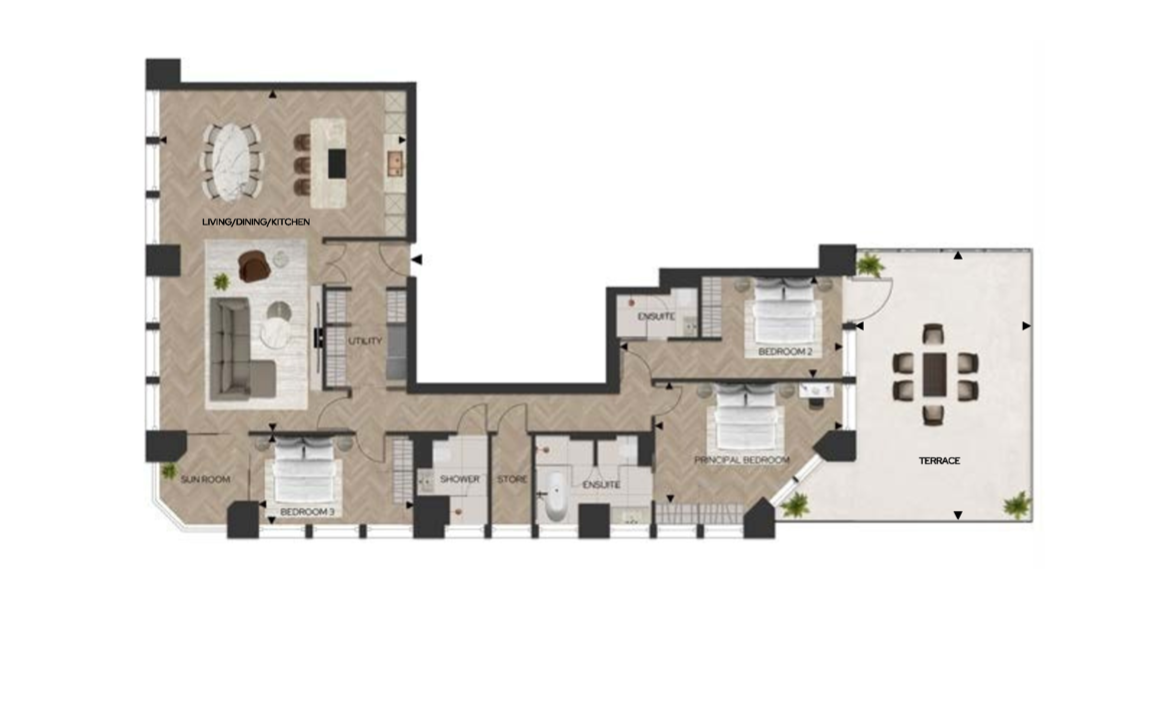 Set within a limited collection of 30 luxury homes, the apartment features a sunroom with panoramic city views, a spacious reception room, and a choice of two interior palettes: light and serene or dark and refined. Residents enjoy access to a private fitness suite, screening room, reading lounge, and 24-hour concierge. The building also includes secure off-street parking and lift access.